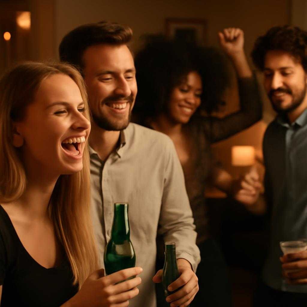 Конкурсы держу в темпе клипа — 90 секунд на раунд. Первый баттл «Wrap-Race» — кто быстрее упакует друга в крафтовый бумажный «свитер» с гирляндой. Второй — викторина «Emoji-year», где я демонстрирую смайлики-ребусы на экране и команда расшифровывает название хита. Победители получают NFC-стикеры с уникальным артом.
