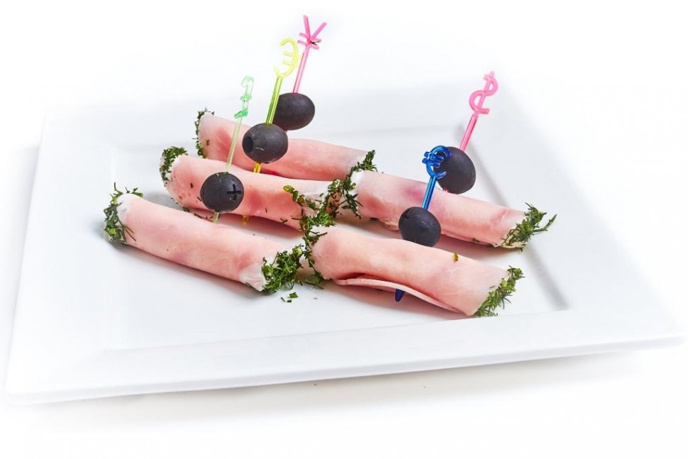 Рулетики из ветчины с сыром и зеленью